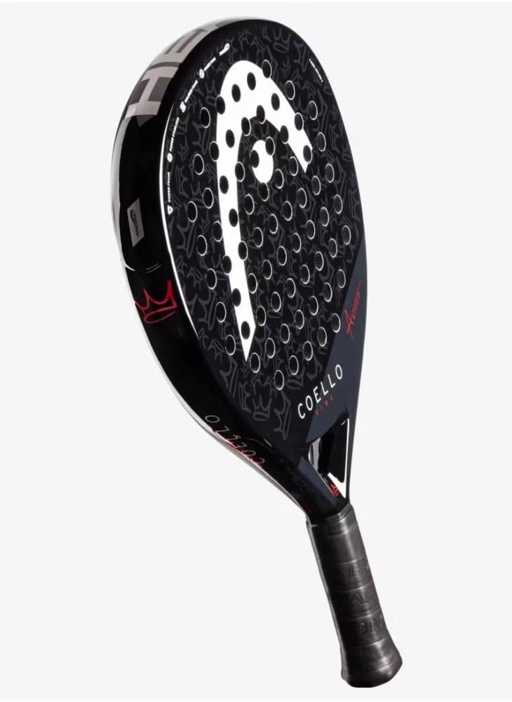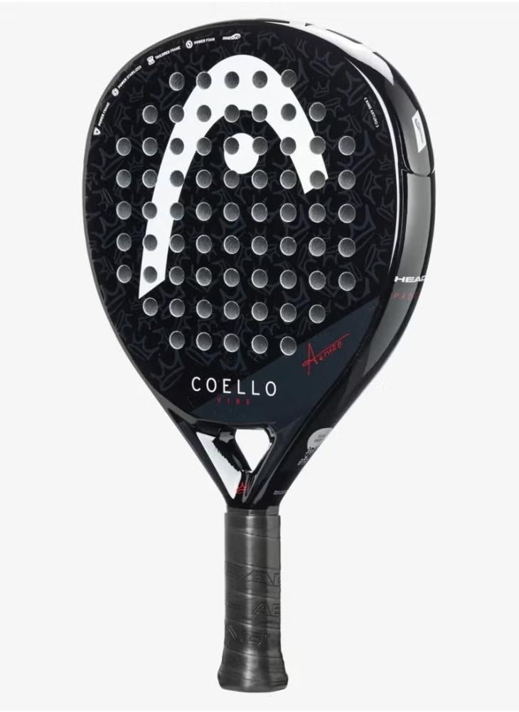 Designed and developed in collaboration with ‘King Arturo’, the COELLO VIBE 2025 PADEL RACQUET is made for beginners and casual players. The world number one’s fans will adore this racquet with an elegant design that includes some personal touches, including his crown logo and signature, and has a glossy and eye-catching finish. This oversized, teardrop-shaped racquet offers easy power and a large sweetspot for greater tolerance and forgiveness. Heavier than other VIBE models, which gives you extra power, the COELLO VIBE 2025 has a fiberglass hitting surface for soft stiffness that supports easy power and is also made with reactive Power Foam and Integrated Protector System technology. Easy power and a larger sweetspot for beginners and casual players Designed and developed in collaboration with ‘King Arturo’ Oversized, teardrop-shaped entry-level racquet Heavier than the other VIBE models; for extra power Fiberglass hitting surface for soft stiffness that supports easy power Power Foam for more reactiveness Integrated Protector System technology