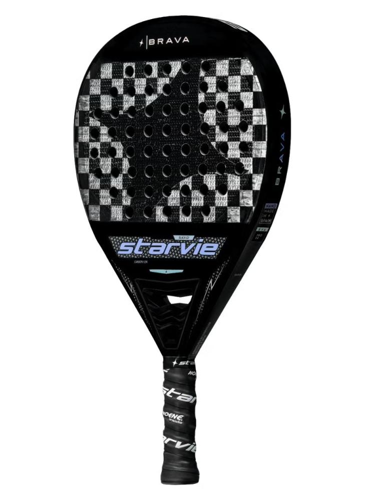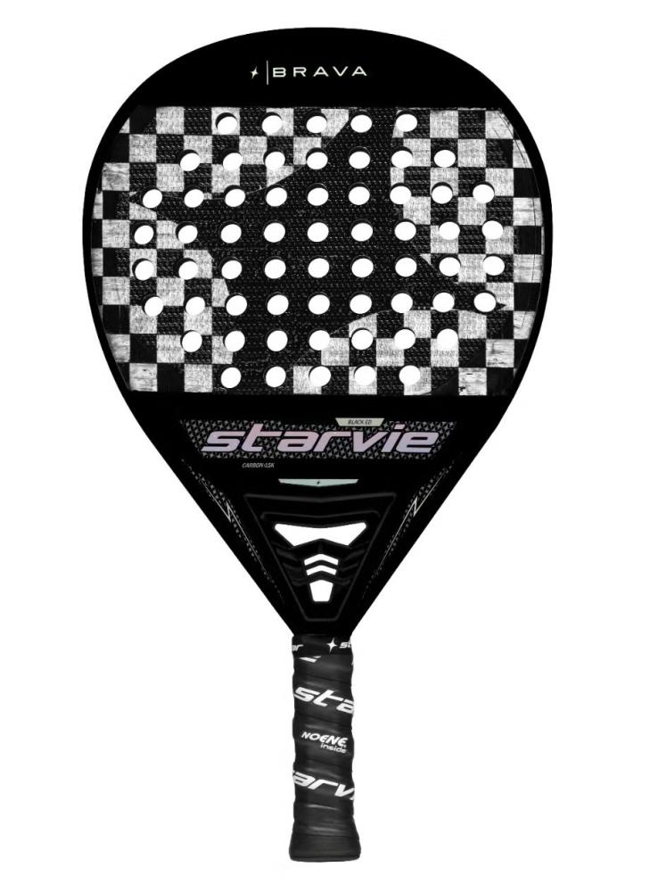 The iconic Brava model returns in a teardrop shape, with 15K aluminized carbon for exceptional flexibility in the racket head. The Pro 50 hard-density rubber is for advanced players looking to dominate the game with extra power and control. NEW 15K aluminized carbon on the racket surface: This combination of carbon and aluminium is even more flexible than 3K and 12K carbon. This type of fibre gives the racket a very soft feel, providing great comfort and maneuverability when playing. Pro 50 Hard-density rubber, which gives the racket a harder feel and is used in more technical models. It is designed for those more technical players who seek greater control and power in their strokes. Teardrop shape, its optimum point is balanced towards the tip. Its roughness on the head created directly from the mold stands out for its stability and durability. The Full Plane Effect technology allows you to hit the ball with greater precision. It incorporates the Core Brava system: a part located in the heart of the racket that has been developed to avoid vibrations during strokes. Noene Inside is a technology applied to the handle of the racket that has been developed in collaboration with NOENE®. The new anti-shock padel grip Noene Inside StarVie, exclusive to the brand's rackets and fitted as standard, absorbs and protects up to 96% of the negative energy generated by shocks and vibrations Product 100% Made in Spain, (Guadalajara).